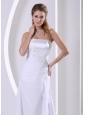 This elegant inspired dress is sure to please even the most picky fashionista. A fitted, strapless bodice is highlighted with the appliques. The floor-length skirt is perfect for both style and comfort. Romantic fabric forming a handkerchief on one side falling down to the floor. The gorgeous skirt is complete with a sweep train. The lace up back completes the look. A very classy look for any event or occasion.