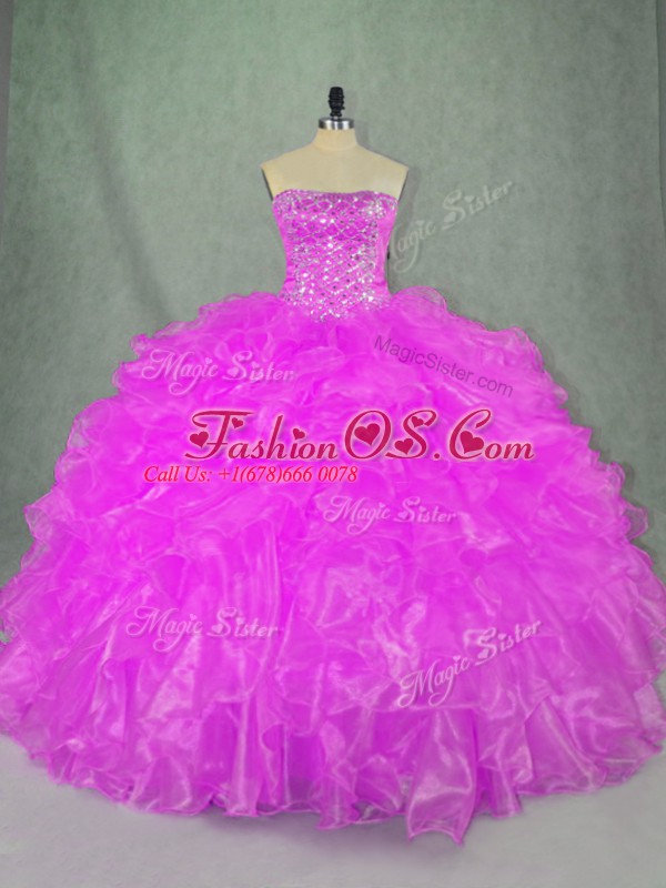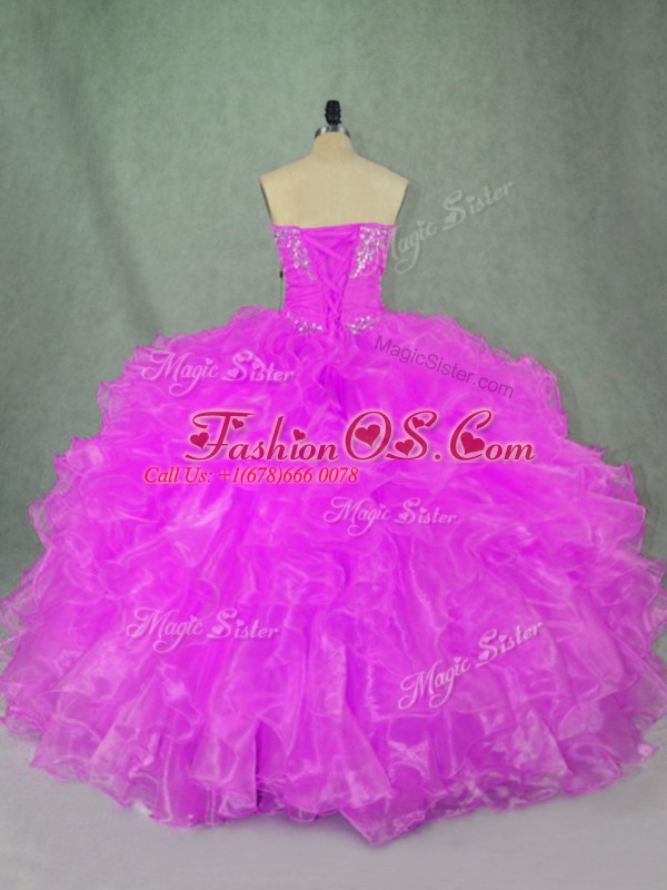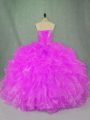 Simple Sleeveless Beading and Ruffles Lace Up Quince Ball Gowns