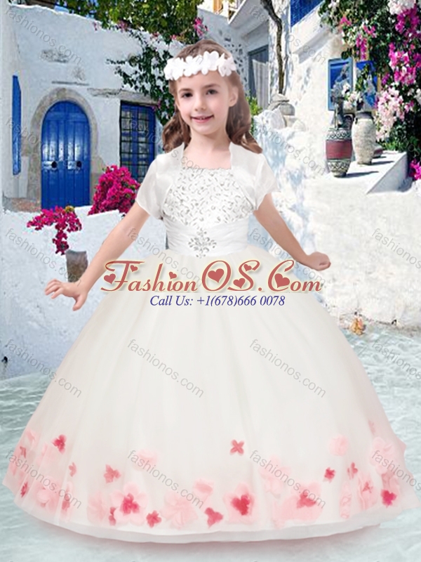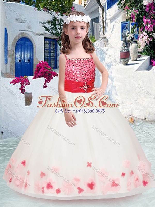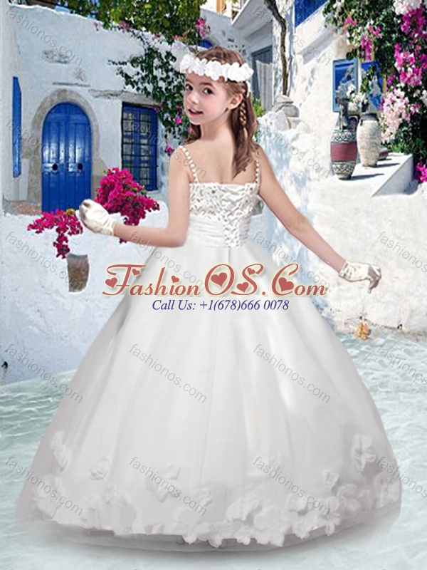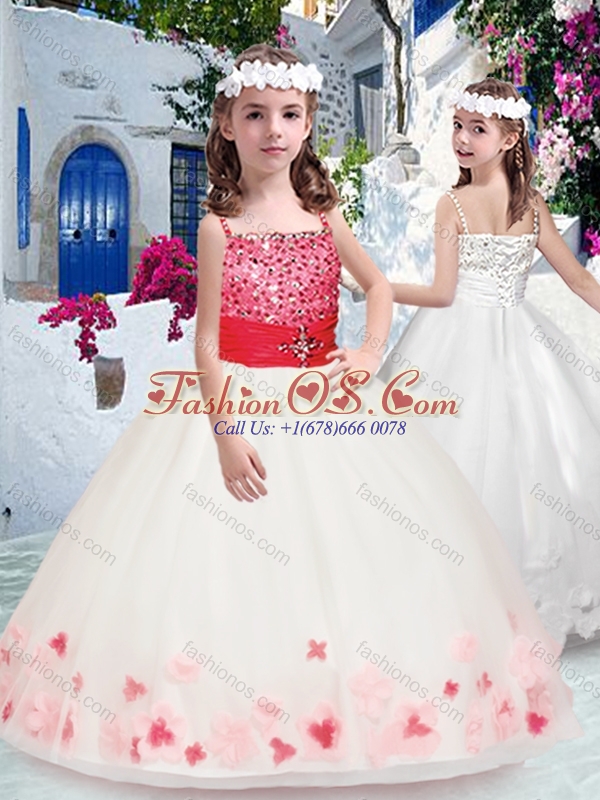 Simple Spaghetti Straps Little Girl Pageant Dresses with Appliques and Beading