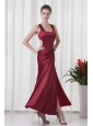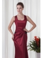 Simple Square Column Red Criss Cross Prom Dress with Ruching