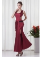 Home >  Prom Dresses >  Elegant Prom Dresses > Simple Square Column Red Criss Cross Prom Dress with Ruching