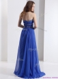 Simple Strapless Empire Blue Prom Dresses with Ruching and Beading