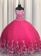 Home >  Quinceanera Dresses >  Luxurious Quinceanera Dresses > Simple Tulle Sleeveless Floor Length Quinceanera Dresses and Beading and Appliques