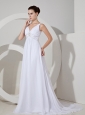 Simple V-neck Beaded Decorate Waist Chiffon Brush Train 2013 Wedding Dress