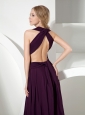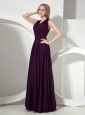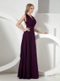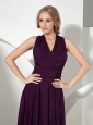 Simple V-neck Dark Purple Chiffon Bridesmaid Dress