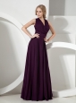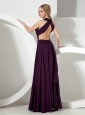 Interwoven asymmetrical bans of shimmering ruches create a figure flattering silhouette on this floor-length dress for prom or semi formals. The v-neck neckline adds the charm and elegant. A trendy one straps cocktail dress in dark purple with a chic and glamorous design that will make any occasion special.