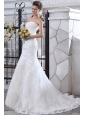 Simple Wedding Dress Mermaid Belt Strapless Court Train Lace