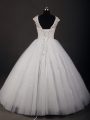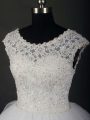 Simple White Bridal Gown Wedding Party with Lace Scoop Sleeveless Zipper