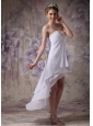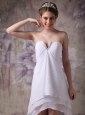 Home >  Prom Dresses >  High Low Prom Dresses > Simple White V-neck High-low Chiffon Prom Dress with Beading