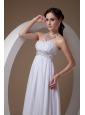 Simply designed dresses can make a dramatic first impression, just like this one. It features a strapless sweetheart style bodice with a lovely pleated texture. An asymmetrical band adorns the midsection and features intricate beadwork throughout, which attracts countless of appreciated eyes. The floor-length white skirt has a slit in the front to outline your slim figure. Wearing this dress, you will sure to be the party queen.