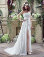 Home >  Wedding Dresses >  Popular Wedding Dresses > Simple White Zipper Strapless Beading and Appliques Wedding Gowns Organza Sleeveless Brush Train