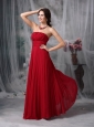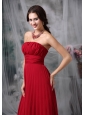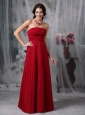 Simple Wine Red Evening Dress Empire Strapless Chiffon Ruch Floor-length