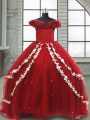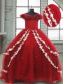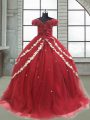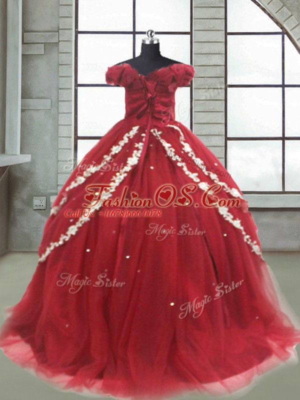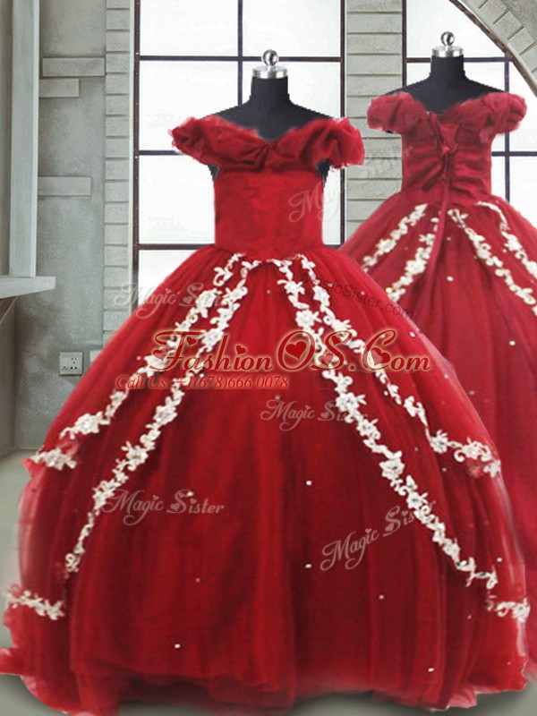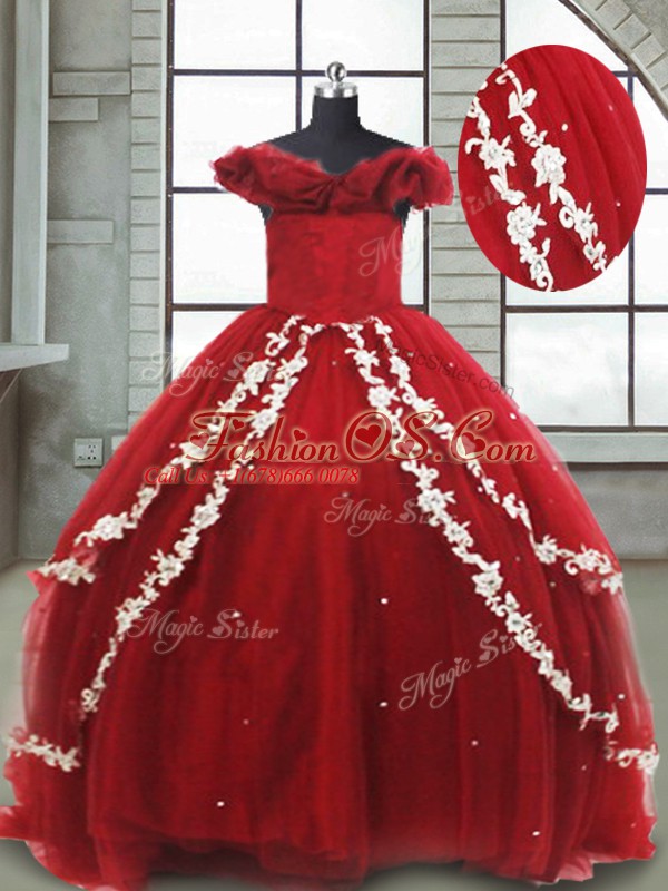 Simple Wine Red Sleeveless Brush Train Appliques Little Girl Pageant Dress