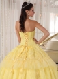Home >  Quinceanera Dresses >  Pretty Quinceanera Dresses > Simple Yellow Quinceanera Dress Sweetheart Organza Appliques Ball Gown