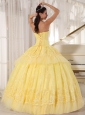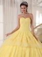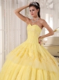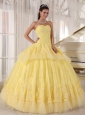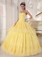 Simple Yellow Quinceanera Dress Sweetheart Organza Appliques Ball Gown