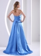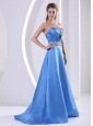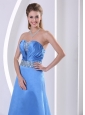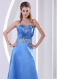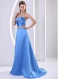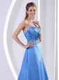 Sky Blue 2013 Plus Size Prom / Evening Dress With Beading and Ruch A-line Sweep Train Satin