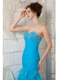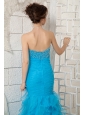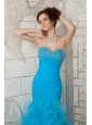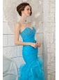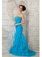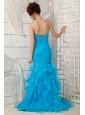 Sky Blue 2013 Prom Dress For Custom Made Sweetheart Organza Beading Brush Train