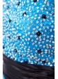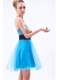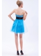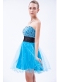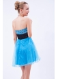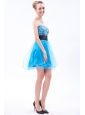 Sky Blue A-line Strapless Prom Dress Organza Beading Mini-length