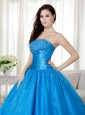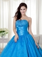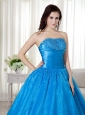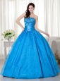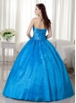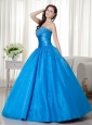 Sky Blue Ball Gown Strapless Floor-length Taffeta  Beading Quinceanera Dress