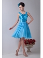 Sky Blue Empire Straps Knee-length Chiffon Cocktail Dress