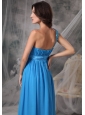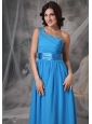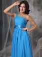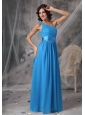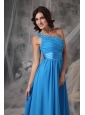 Sky Blue One Shoulder Elegant Bridesmaid Dress Chiffon Beading