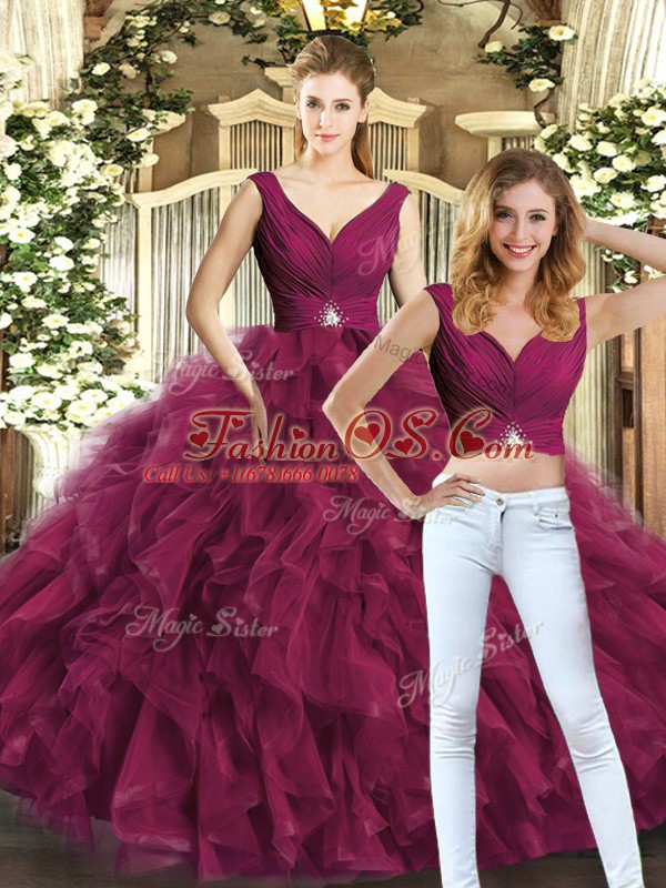 Sleeveless Backless Floor Length Beading and Ruffles Quinceanera Gown