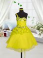 Sleeveless Beading and Appliques and Hand Made Flower Lace Up Child Pageant Dress