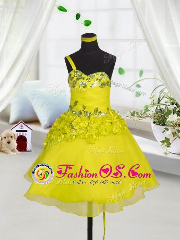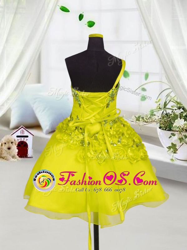Home >  Special Occasion Dresses >  New Style Little Girl Pageant Dresses > Sleeveless Beading and Appliques and Hand Made Flower Lace Up Child Pageant Dress