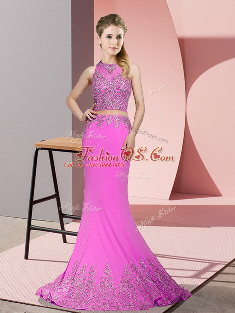Sleeveless Beading and Appliques Zipper Prom Evening Gown with Lilac Sweep Train