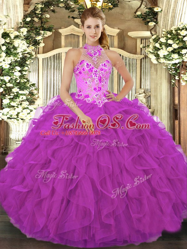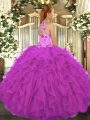 Sleeveless Beading and Embroidery and Ruffles Lace Up Quinceanera Gowns