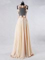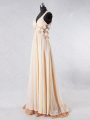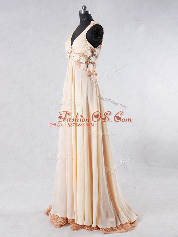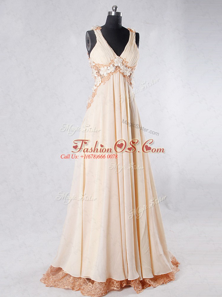 Home >  Prom Dresses >  Fashionable Prom Dresses > Sleeveless Beading and Lace and Hand Made Flower Backless Prom Evening Gown with Champagne Sweep Train