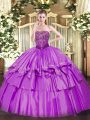 Sleeveless Beading and Ruffled Layers Lace Up Sweet 16 Dresses