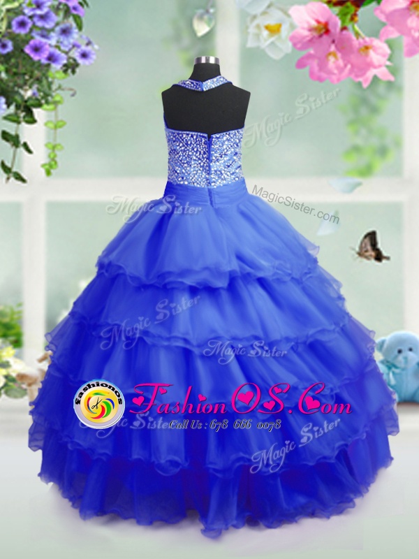 Sleeveless Beading and Ruffled Layers Zipper Little Girls Pageant Dress