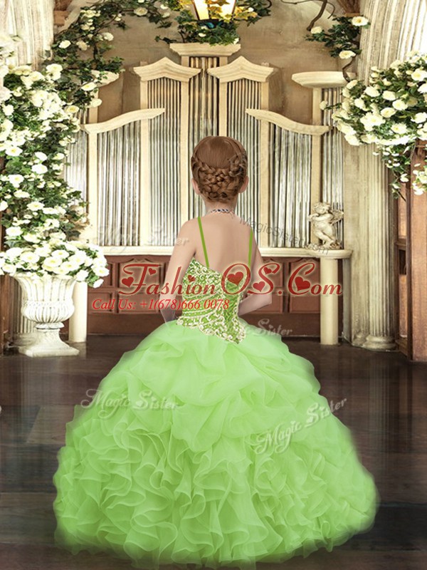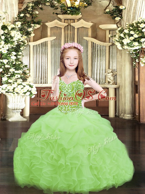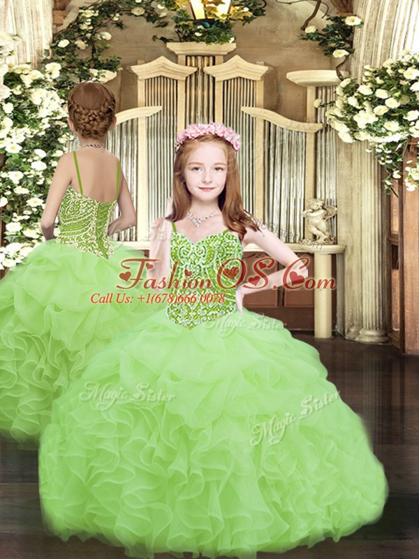 Sleeveless Beading and Ruffles and Pick Ups Floor Length Little Girls Pageant Gowns