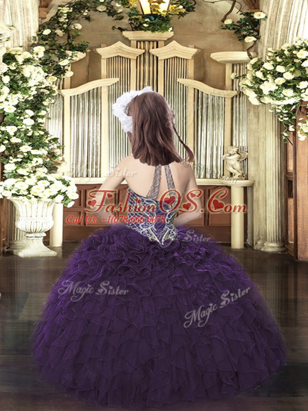 Sleeveless Beading and Ruffles Lace Up Girls Pageant Dresses