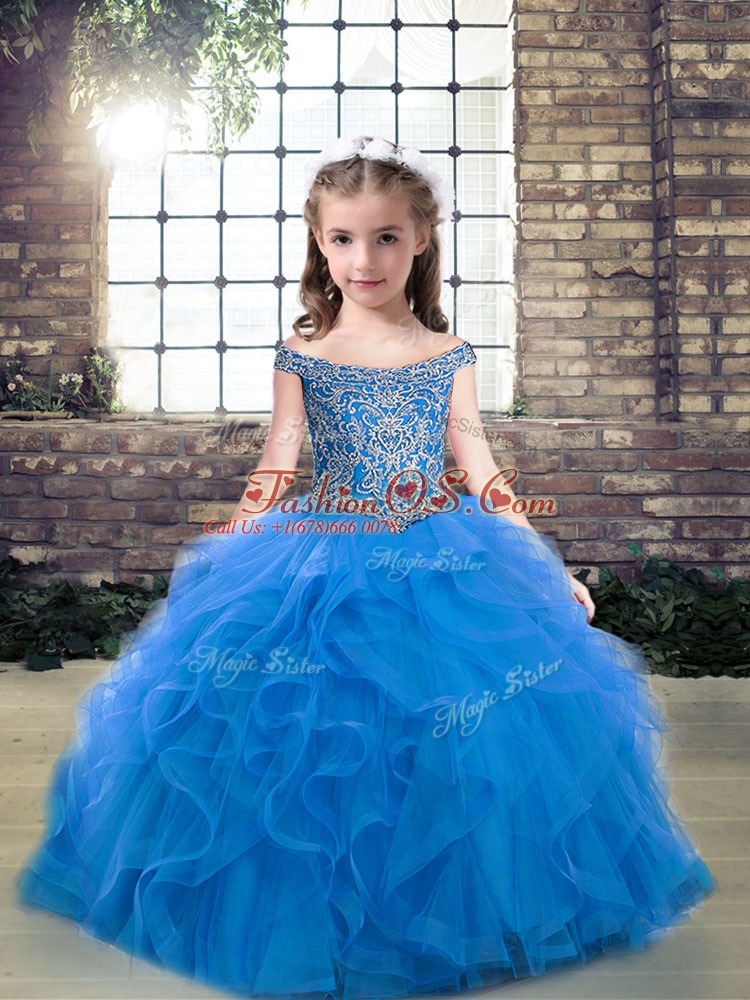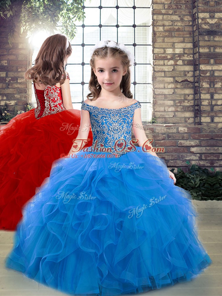 Home >  Special Occasion Dresses >  2019 Little Girl Pageant Dresses > Sleeveless Beading and Ruffles Lace Up Kids Pageant Dress
