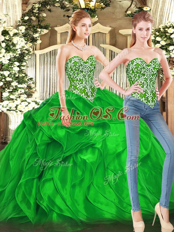 Sleeveless Beading and Ruffles Lace Up Sweet 16 Dress