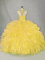 Sleeveless Beading and Ruffles Zipper Ball Gown Prom Dress