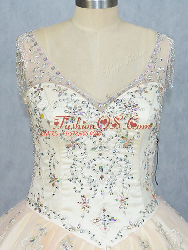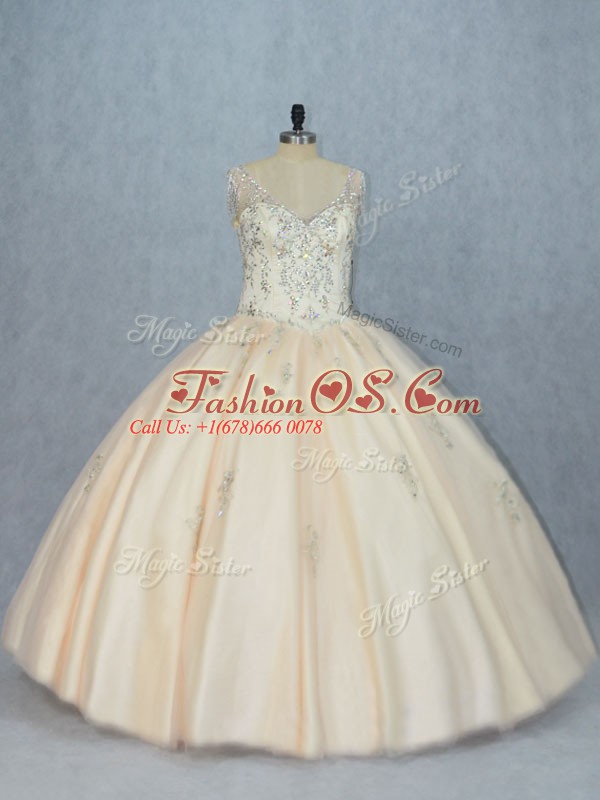 Sleeveless Beading Lace Up Ball Gown Prom Dress