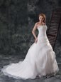 Sleeveless Brush Train Beading and Appliques and Ruching and Pick Ups Zipper Bridal Gown