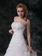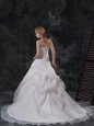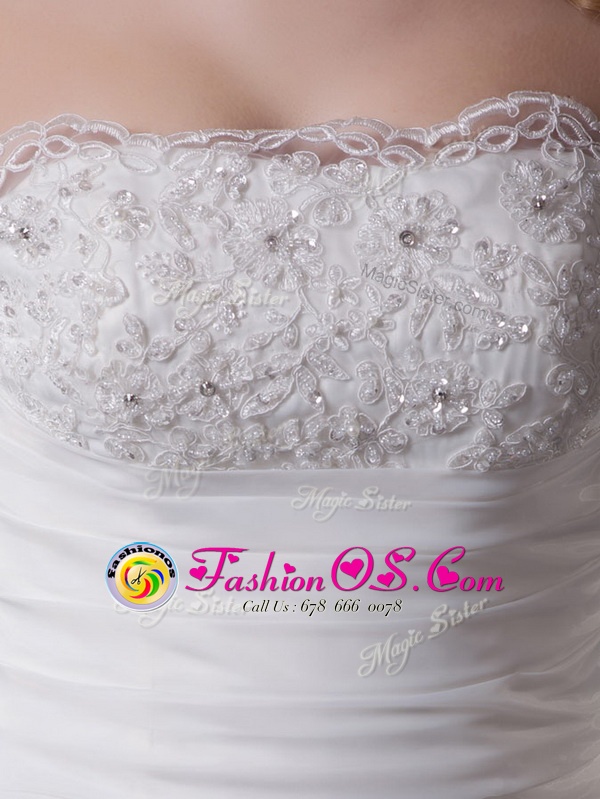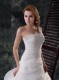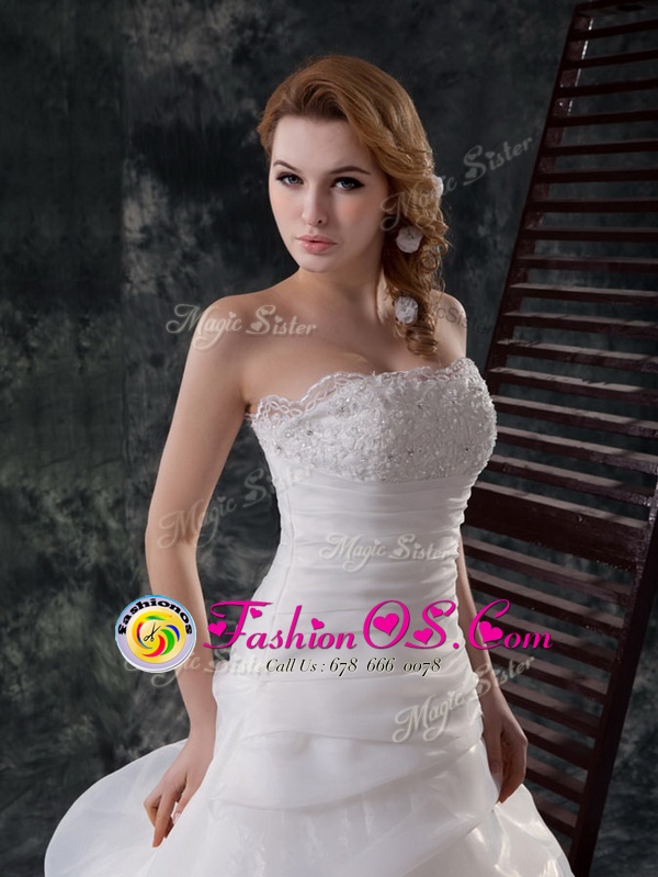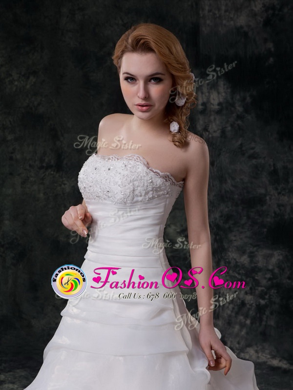 Home >  Wedding Dresses >  Fashionable Wedding Dresses > Sleeveless Brush Train Beading and Appliques and Ruching and Pick Ups Zipper Bridal Gown