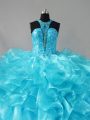 Sleeveless Brush Train Beading and Ruffles Lace Up Ball Gown Prom Dress