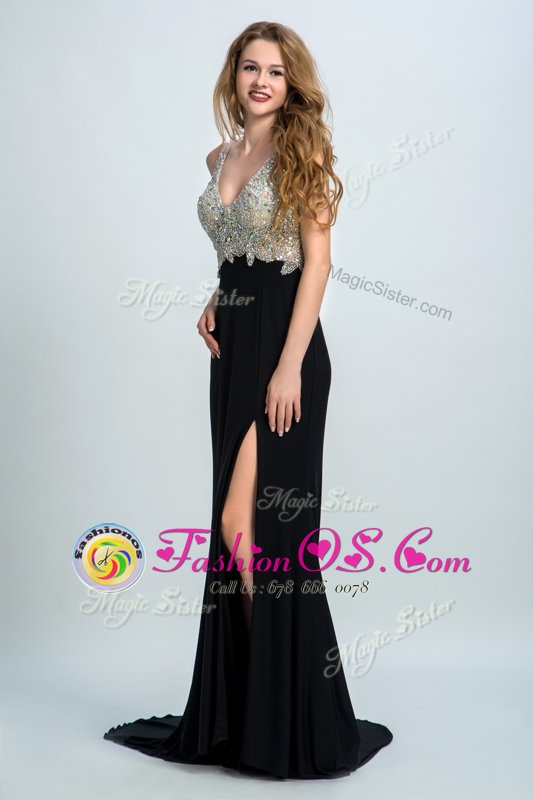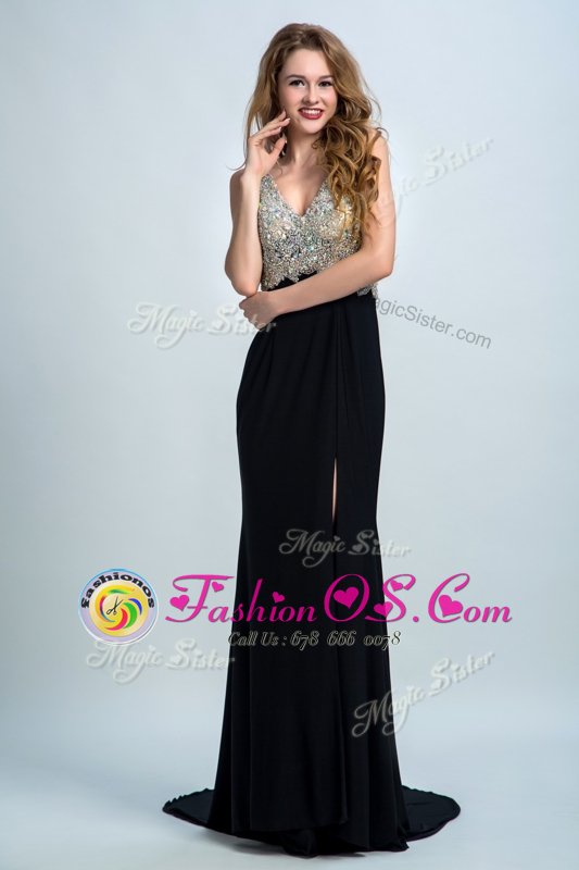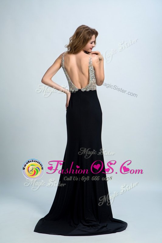 Home >  Prom Dresses >  Fashionable Prom Dresses > Sleeveless Brush Train Beading Backless Prom Gown