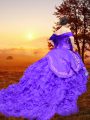 Sleeveless Brush Train Embroidery and Ruffles Lace Up Ball Gown Prom Dress