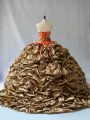 Sleeveless Brush Train Lace Up Beading and Pick Ups Quinceanera Gowns