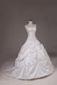 Sleeveless Brush Train Lace Up Beading and Pick Ups Wedding Gowns