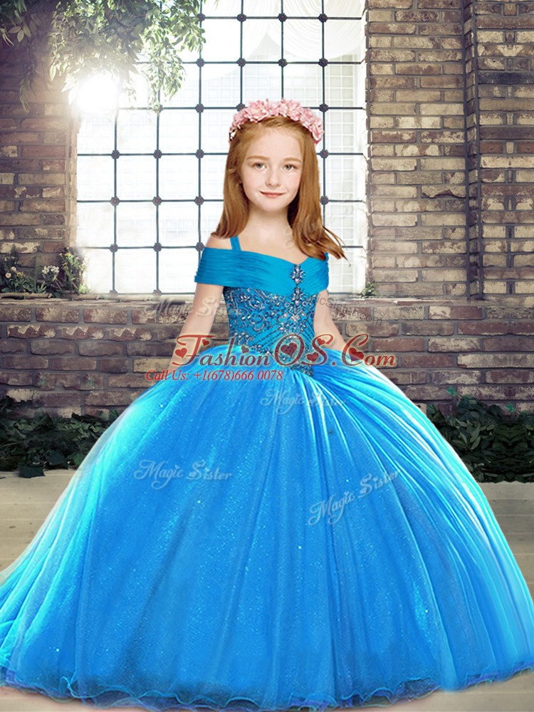Sleeveless Brush Train Lace Up Beading Kids Formal Wear