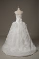 Sleeveless Brush Train Lace Up Belt Wedding Gowns