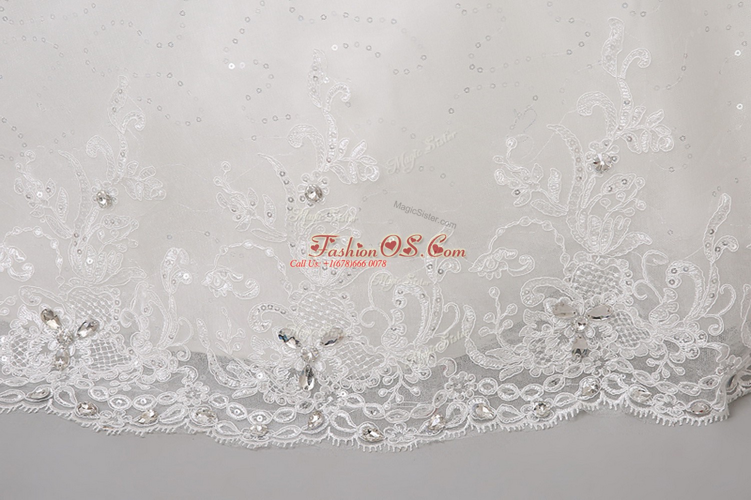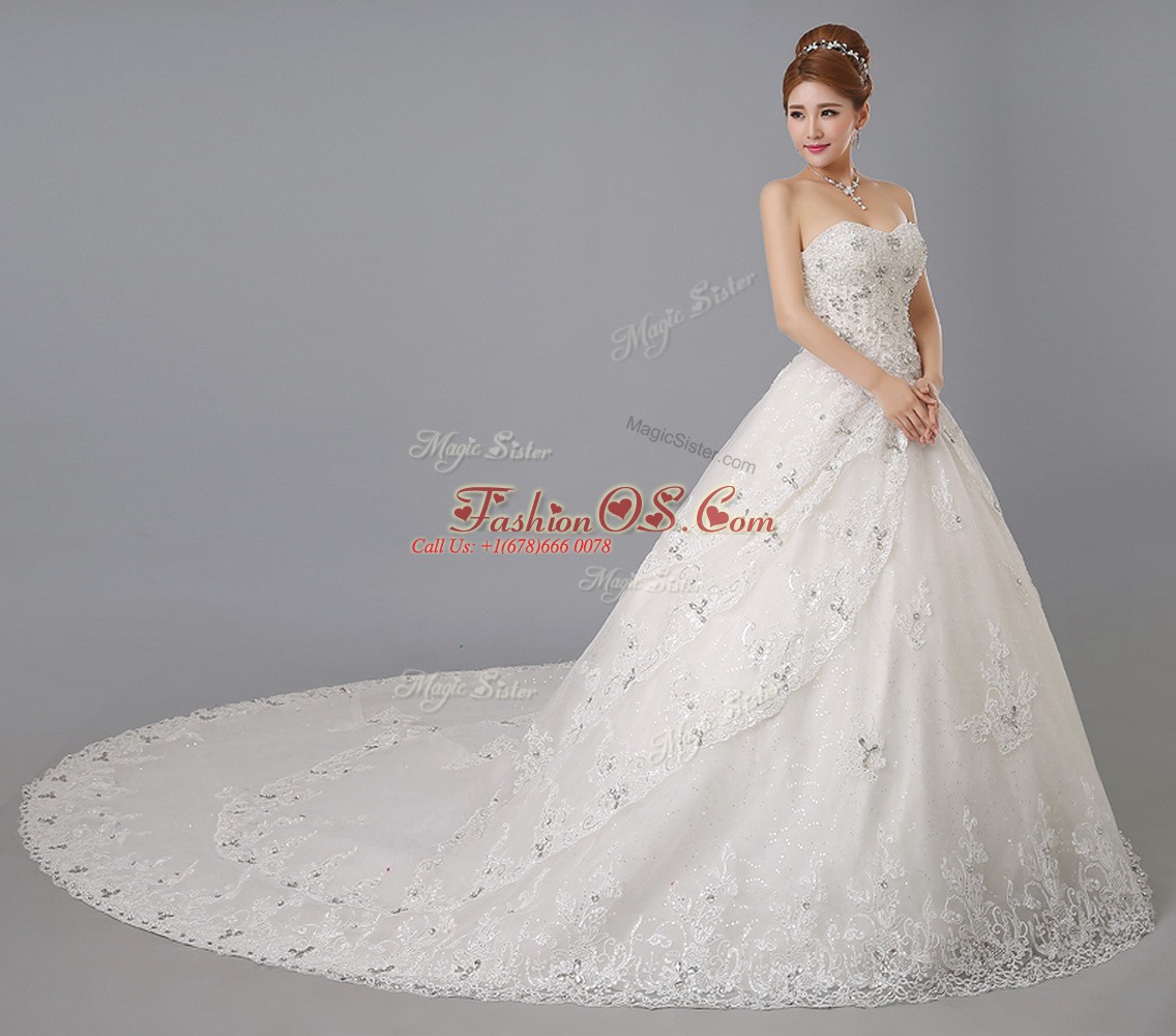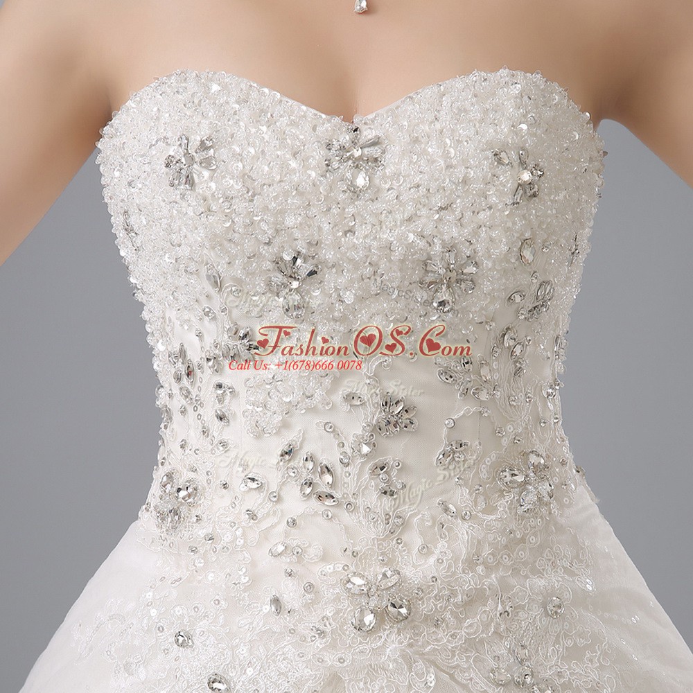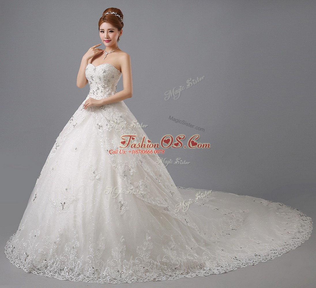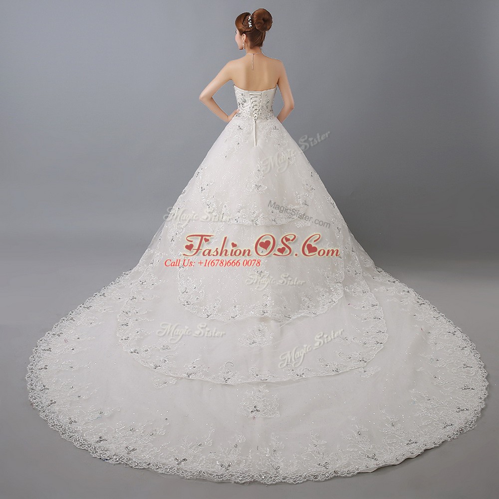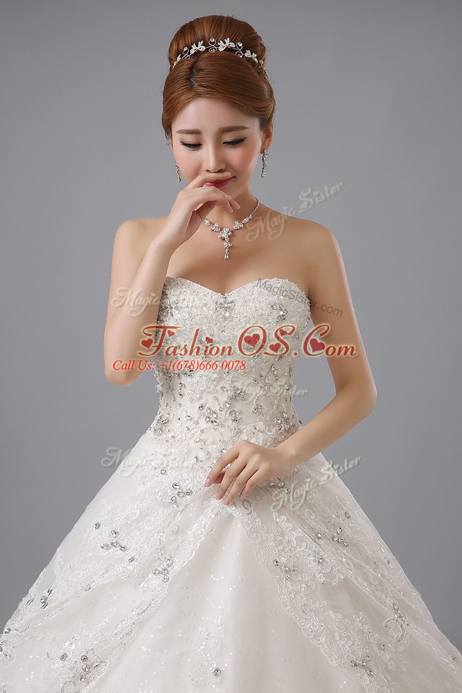 Sleeveless Chapel Train Lace Up Beading and Lace Wedding Gowns
