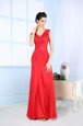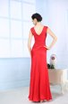 Sleeveless Chiffon Floor Length Side Zipper in Red for with Beading